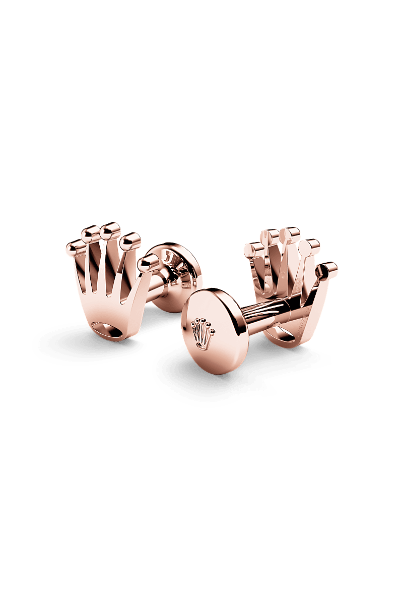 Rolex-manchetknopen van 18 kt Everose-goud in de vorm van de kenmerkende Rolex-kroon.